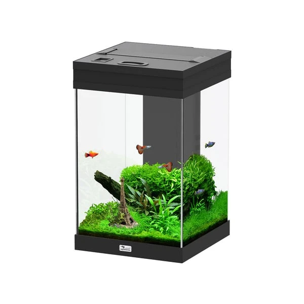 Klare Linien und ein funktionelles Design zeichnen die Aquarien von Aquatlantis aus. Die Aquarien dieser Linie werden aus hochwertigem Floatglas gefertigt und verfügen über eine komplett abnehmbare Abdeckung mit integrierter wasserdichter LED-Beleuchtung. Die LED-Beleuchtung verfügt über zwei getrennt steuerbare Kanäle, so dass mit dem als Zubehör erhältlichen „Luminus LED Controller“ verschiedene Lichtverhältnisse und Lichtphasen programmiert werden können. Das Aquarium ist ausgestattet mit einem kompletten Innenfiltersystem mit integrierter Pumpe und einem Heizer.