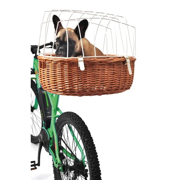 Der Aumüller Fahrrad-Tierkorb ist komplett ausgestattet mit waschbarer Einlage und Sicherheitsdrahtkuppel. Mit dem durchdachten Befestigungssystem am Sattelrohr wird der Fahrradkorb für Tiere schnell und sicher befestigt und kann bis zu 10 kg insgesamt tragen. Der nächsten Radtour mit dem Vierbeiner steht somit nichts mehr im Weg! Der Korb ist in reiner Handarbeit produziert und aus Weide gefertigt.