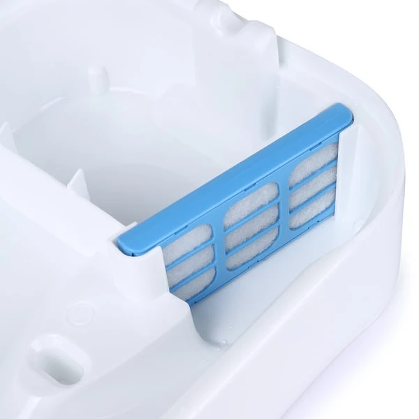 Das wird optimal unterstützt vom Trinkautomat 335, denn er ermöglicht durch sein Kaskadensystem, das gleich auf mehreren Höhen getrunken werden kann. Das ist nicht nur bequemer, es sorgt auch für eine Sauerstoffanreicherung des Trinkwassers. Durch ein isoliertes Pumpensystem ist der Trinkbrunnen sehr laufruhig, so dass er sich problemlos in die Wohnräume eingliedert, ohne zu stören. Damit das Wasser immer frisch und sauber bleibt sorgt der Polymer-Kohlenstofffilter für eine permanente Reinigung des Wassers. Übrigens lassen sich auch die Näpfe bequem in der Spülmaschine reinigen.
