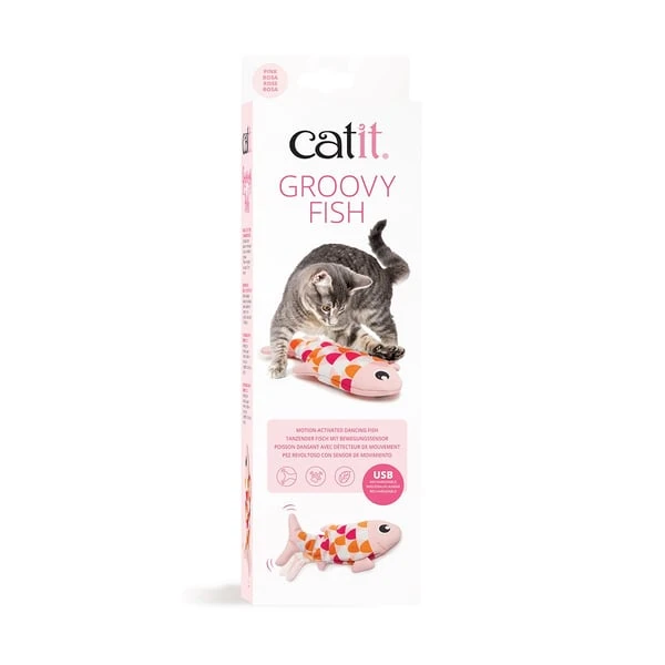 Der Fisch von Catit bewegt sich bei Berührung deiner Samtpfote interaktiv in drei verschiedenen Bewegungsmodi. Als würde dieser tanzen, löst er den natürlichen Jagdtrieb deiner Katze aus. Wenn mit dem Fisch nicht mehr gespielt wird, wechselt er in den Standby-Modus. Der Motor liegt geschützt im Inneren eines Gehäuses, welcher mit einem weichen bedruckten Stoff bezogen ist.