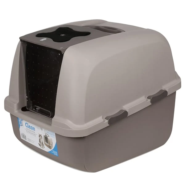 Die Toilette ist besonders für große Katzen geeignet und hat viele Vorzüge, die ihre Verwendung und Pflege bequemer machen. Eine Beutelverankerung am Eingangsbereich macht die Reinigung denkbar einfach, weil dadurch eine Hand für die Katzenstreuentnahme frei ist. Ein simples Verschieben des Verschlussriegels, und die Abdeckung ist fixiert oder kann abgenommen werden. Und eine auswechselbare Aktivkohle-Filtermatte ist schnell ersetzt und vermindert unangenehme Gerüche.