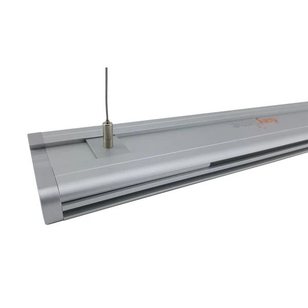 - Stufenlos höhenverstellbare Edelstahl-Drahtseil-Aufhängung.
