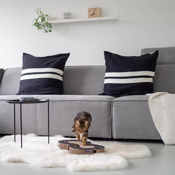 Mit ihrer Stabilität ist Wellpappe ein hervorragend geeignetes Herstellungsmaterial für Kratzmöbel. Besonders nachhaltig aus recycelten Materialien hergestellt. Außerdem ist das Kratzmöbel besonders platzsparend auch in kleinen Räumen. Mach deiner Katze eine Freude – mit dem Kratzmöbel von District70!
