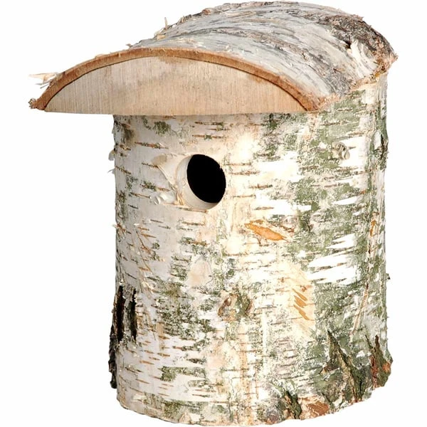 Dieser naturbelassene Nistkasten mit Rinde verbindet Funktionalität und ein ansprechendes Äußeres. Die Nisthilfe besteht aus FSC-zertifiziertem Birkenholz (Betula pendula, Hauptholzart) aus nachhaltiger und umweltfreundlicher Forstwirtschaft. Mit einem Durchmesser von 32 mm hat das Einflugloch die ideale Größe, damit das Vogelhaus von größeren Meisenarten, wie etwa Kohlmeisen und Haubenmeisen, genutzt werden kann. Diese Vögel sind vor allem auch als Schädlingsbekämpfer gern gesehene Gäste im Garten, wo sie als Fressfeind der Eichenprozessionsspinner auftreten. Ein kleiner Dachvorsprung schützt den Eingang vor Regen und Schnee und mithilfe der Befestigungsmöglichkeit auf der Rückseite lässt sich der Meisenkasten überall im Garten an Bäumen und Hauswänden anbringen. Die Herstellung in europäischer Produktion erfolgt in Handarbeit mit Fokus auf bester Qualität in der Verarbeitung. Der Nistkasten ist ca. 14 x 14 x 22 cm (L x B x H) groß.