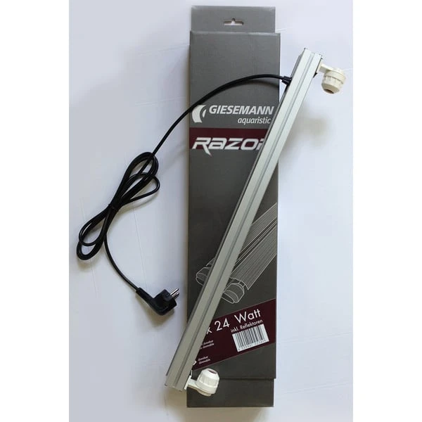 Die RAZOR T5 von Giesemann bringt ein hochwertiges Lampensystem zu Ihnen nach Hause, welches Lichtmodul ebenso wie Reflektoren umfasst. Alle Versionen und Varianten werden auf modernen Produktionsanlagen ausschließlich in Deutschland hergestellt, wo jede einzelne Lampe umfangreichen Qualitätskontrollen unterzogen wird, was für eine gleichbleibend hohe Qualität sorgt. Das Leuchtengehäuse ist kompakt, passt auf jedes Becken und unterstützt eine optimale Ausleuchtung. So befindet sich im oberen Bereich eine integrierte Führungsschiene, in der zwei Edelstahlverbinder eingeschoben und fixiert werden können: So gleicht das System selbständig unterschiedliche Aquarienlängen aus. An diesen Verbindern befinden sich mehrfache Montagemöglichkeiten, wodurch das Modul optimal unter Abdeckungen, an Haltern oder direkt ans Glas befestigt werden kann. Die hochwertige eloxierte Oberfläche sorgt jederzeit für optimale Lichtreflektion und ist unempfindlich gegen selbst aggressives Salzwasser. Die eingebauten elektronischen HF-Vorschaltgeräte sorgen für einen flackerfreien Betrieb mit Sofortstart. In Deutschland umfasst der serienmäßige Lieferumfang zudem spezielle RAZOR Hochglanzreflektoren, welche die Lichtkraft der Leuchtstofflampen nahezu verdoppeln.