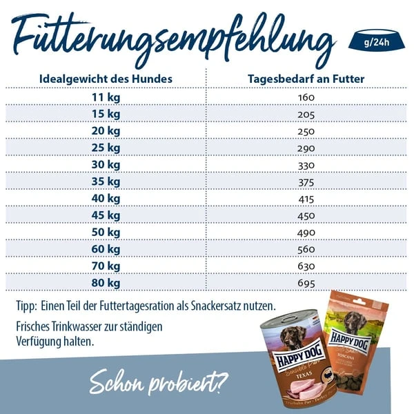Rohprotein 25,5%, Rohfett 7,0%, Rohfaser 6,0%, Rohasche 6,5%, Calcium 1,4%, Phosphor 0,9%, Natrium 0,4%, Kalium 0,55%, Magnesium 0,08%, Omega-6-Fettsäuren 1,8%, Omega-3-Fettsäuren 0,2%