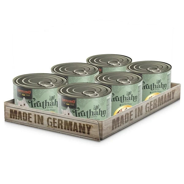 56% Truthahnfleisch, -leber, -herz, -muskelmagen; 28,8% Fleischbrühe; 14% Truthahnfilet; 0,5% Mineralstoffe; 0,5% Eierschalen, getrocknet; 0,2% Lachsöl