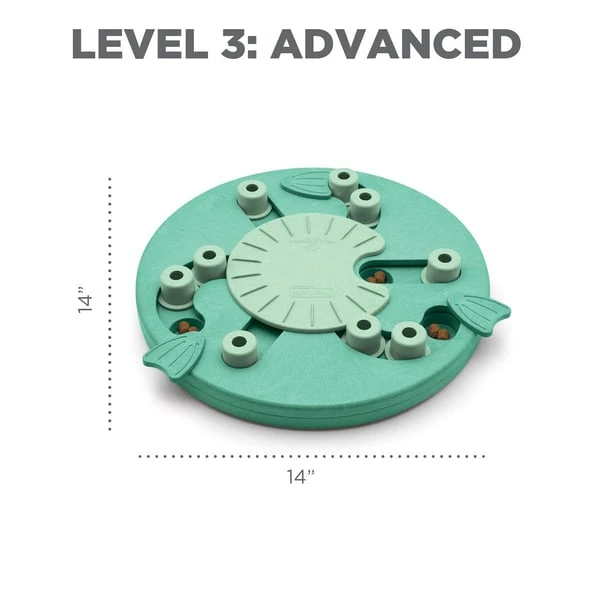 Das Hundespielzeug Dog Worker von Nina Ottosson by Outward Hound ist ein anspruchsvolles Denkspielzeug mit Level 3, das deinen Hund stundenlang beschäftigen wird, da er bei der Suche nach den versteckten Leckerlis seine Instinkte ausleben kann. Bei diesem interaktiven Hunde-Denkspielzeug für Fortgeschrittene muss dein Hund drei Schritte erlernen, um an seine leckeren Belohnungen zu gelangen: die Flossen drehen, die Blöcke verschieben und das Rad in der Mitte drehen. Die verdeckten Fächer befinden sich unter den Flossen und unter dem Rad in der Mitte.