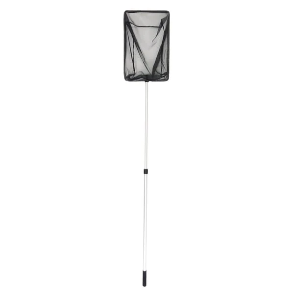 Modell klein: Der rechteckige, 25 x 17 cm große Algenkescher bietet sich für kleine und mittelgroße Gartenteiche an. Der 113 cm lange Stiel besteht aus eloxiertem Aluminium.