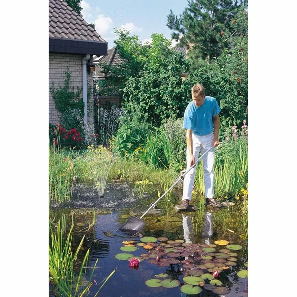 Wenige warme Sommertage reichen aus, um das Algenwachstum im Gartenteich explosionsartig ansteigen zu lassen. Schnelle Abhilfe schafft hier der große OASE Algenkescher aus engmaschiger Gaze. Der Algenkescher ist in zwei Größen erhältlich.
