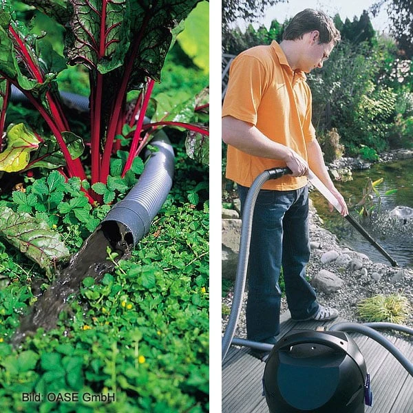 Der Oase Pondovac Classic ist ein effektiver Multifunktionssauger für Ihren Teich oder Pool. Bei der Anwendung als Teichgrundsauger entfernt er Schlamm, Laub und andere Ablagerungen am Grund Ihres Gartenteiches. Durch seinen 1400 Watt leistungsstarken Motor saugt er bis zu einer Tiefe von 2 m und ein schnelles und effektives Arbeiten ist kein Problem. Der Oase Pondovac Classic ist sofort Einsatzbereit da bereits alles im Lieferumfang enthalten ist. Mit seinen 4 unterschiedlichen Saugdüsen (Fugendüse, Algendüse, Flachdüse und variable Universaldüse) kann man leicht wechseln und somit ist keine Stelle Ihres Teiches unerreichbar. Der 4 m lange Saug- und der 2 m lange Ablaufschlauch geben Ihnen genug Manövriermöglichkeiten um leicht von jeder Position aus den Teich zu säubern – ohne ein ständiges Umhertragen. Dem Teichsauger liegt zudem noch eine Filtertüte bei um ihn auch als Trockensauger verwenden zu können.