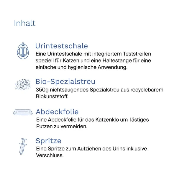 Teste mit dem All-in-One Urintest Kit zuhause, stressfrei und ohne lange Wartezeiten. Erkenne mit regelmäßigen Tests viele der häufigsten Katzenkrankheiten frühzeitig. Erhalte dein Ergebnis einfach erklärt und von unserem Fachpersonal geprüft innerhalb weniger Minuten in der kostenlosen Pezz-App.