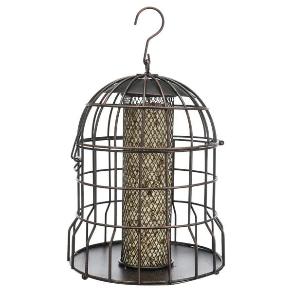 Der Erdnuss-Futterspender lässt sich einfach durch den aufklappbaren Deckel befüllen und das Schutzgitter ermöglicht kleinen Vögeln das Fressen in Ruhe.