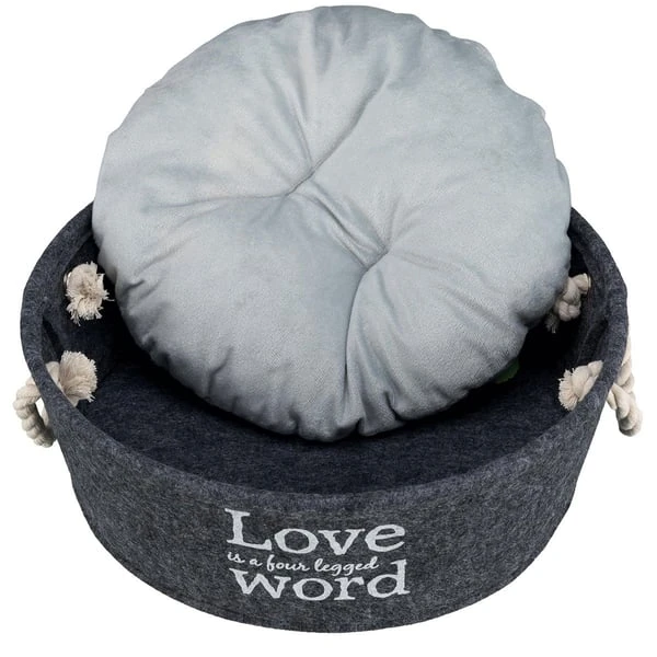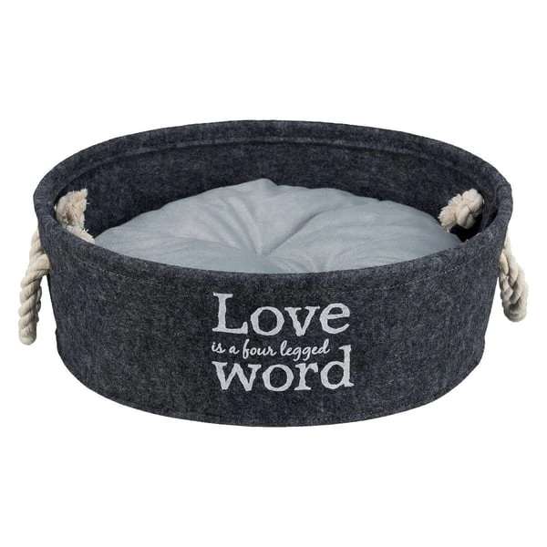 Langes Vergnügen verspricht das Bett aufgrund seiner robusten und strapazierfähigen Beschaffenheit. Dank der wärmenden Eigenschaft ist auch an kalten Tagen für ein warmes Plätzchen gesorgt. Dank der schnelltrocknenden und wärmespeichernden Fähigkeit, ist der verwendete Polyester auch bei nassem und kaltem Wetter von Vorteil. Für alle, denen eine natürliche Beschaffenheit des Schlafplatzes wichtig ist, wurde hier auf eine Schadstoffprüfung geachtet. Ein weiterer Vorzug an diesem Hundebett: Es besitzt ein herausnehmbares Kissen, welches den Schlafplatz variabel gestaltet. Der verwendete Filz verleiht dem Bett strapazierfähige und wärmende Eigenschaften.