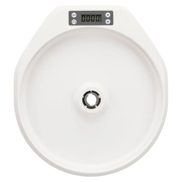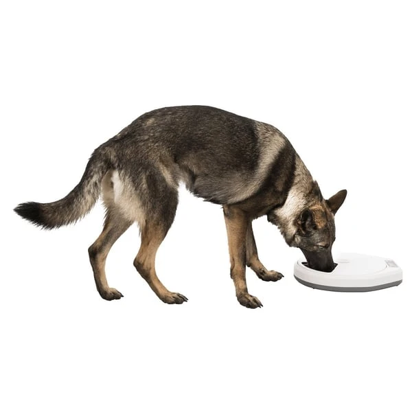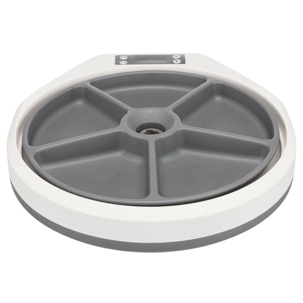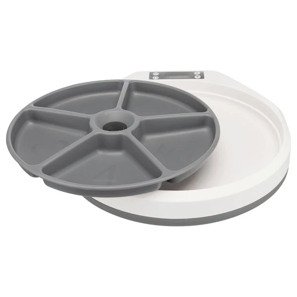 Sie müssen Ihren Liebling leider einmal einen Tag alleine lassen? Dann ist mit diesem Futterautomaten die regelmäßige Fütterung trotzdem gesichert. Er ist so programmierbar, dass er in regelmäßigen Abständen eine von Ihnen vorbereitete Portion Futter freigibt. Sie entscheiden selbst, welche Menge Futter Sie Ihrem Hund oder Ihrer Katze in den fünf Futterkammern zur Verfügung stellen. Bis zu 240 ml Nass-oder Trockenfutter können jeweils eingefüllt werden. Artikeldetails: