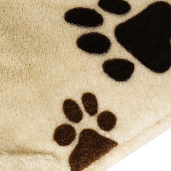 - mit einem weichen Plüsch-Bezug mit Pfotenmotiv überzogen und mit 8 – 14 cm dickem Polyesterflies gefüllt. Die Unterseite besteht aus unempfindlichen brauen Plüschstoff