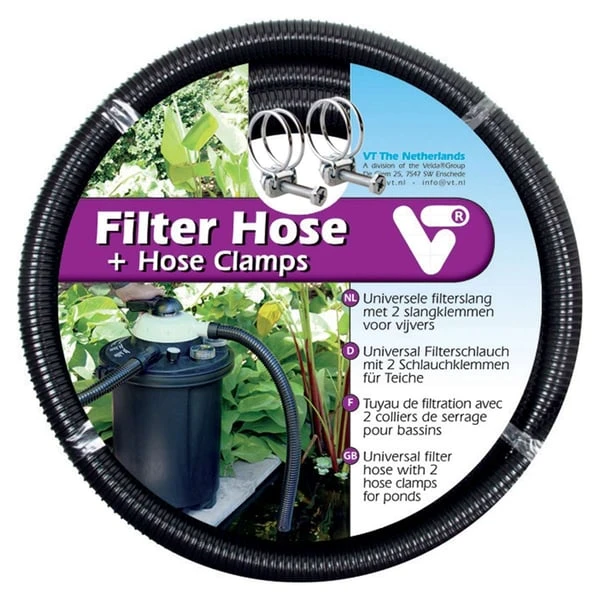 Universal Spiralschlauch von Velda für Teichfilter. Der Schlauch ist 5 Meter lang und wird mit zwei Schlauchklemmen geliefert.