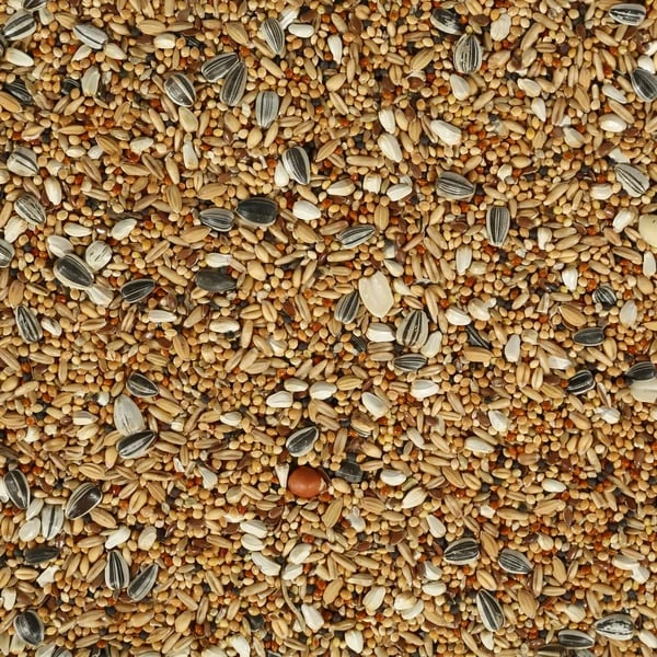 Plata Hirse 32%, Rote Hirse 10%, Kanariensaat 9%, Haferkerne 9%, gestreifte Sonnenblumenkerne 6%, Weizen 5%, Cardy 5%, Silberhirse 4%, Rübsen 4%, Hanfsaat 4%, weiße Sonnenblumenkerne 3%, Leinsamen 3%, Paddy-Reis 2,5%, enthülste Erdnüsse 1,5%, Nigersamen 1%, Japan Hirse 1%