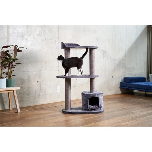 Bei dem modernen ZooRoyal Kratzbaum Lina in Anthrazit bleiben keine Wünsche deiner Katze offen: Er verfügt über 3 Liegeflächen, einer kuscheligen Höhle mit maschinenwaschbarem Kissen und vielen Kratzflächen aus natürlichem Sisal. Nach dem Krallen wetzen, Klettern und Spielen kann sich deine Katze auf den beiden großen Liegeflächen oder in der kuscheligen Höhle entspannt zurückziehen und ausruhen.