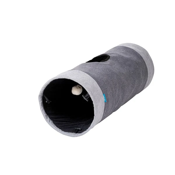 Ein stabiler Katzentunnel, der Ihren Pfotenliebling viele tolle Möglichkeiten bietet: Sie kann sich im Tunnel verstecken, mit dem enthaltenen Spielzeug und mitgebrachten Spielzeugen darin spielen, durchkriechen oder darin herumtollen. Die eingearbeitete Knisterfolie weckt die Neugier Ihrer Katze und animiert sie zum ausgelassenen Spielen und Herumtollen. Dabei kommt der Spielball am Eingang ins Schwingen und sorgt für die Extraportion Spielspaß.